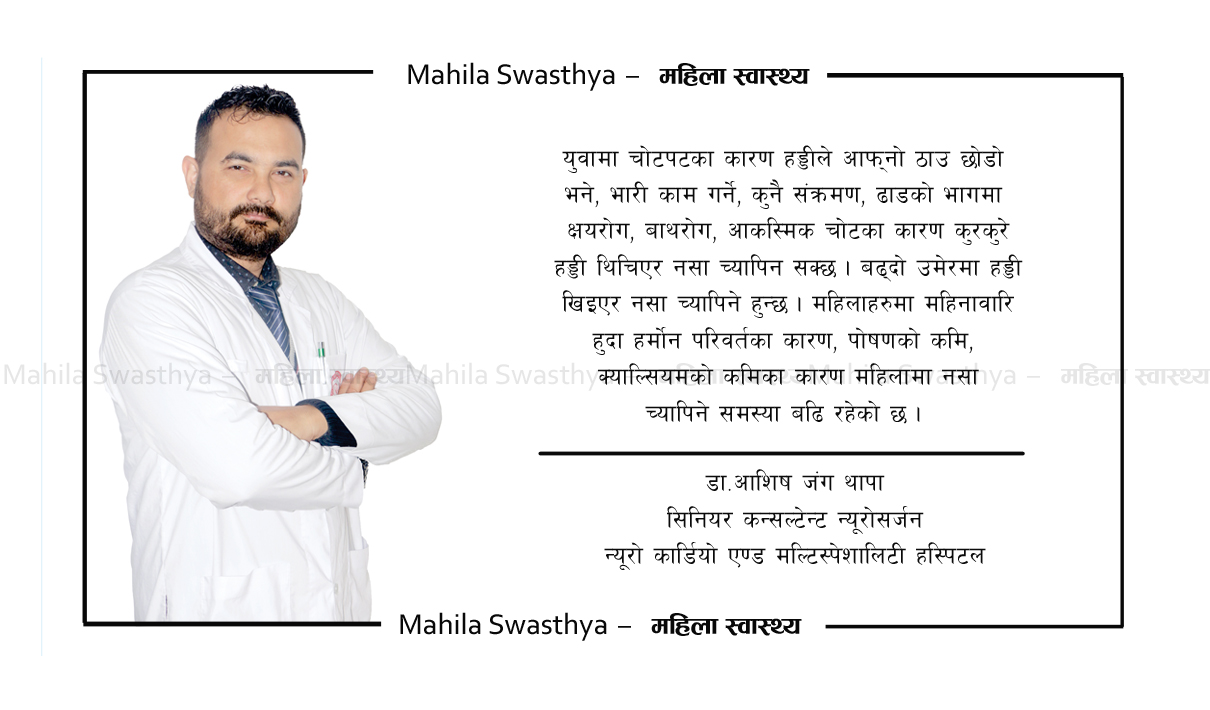 पछिल्लो समय नसाको समस्या बढ्दै गएको छ । धेरै मानिसलाई कम्मर दुख्ने, गर्धन दुख्ने, हातखुट्टा झम्झाउने, निदाउने, पोलेको जस्तो अनुभव हुने जस्ता समस्या भइरहेको हुन्छन्। नसा च्यापिनु आफैँमा कुनै रोग नभएर ढाडको हड्डी, डिस्क, लिगामेन्ट, मांसपेशी तथा नसाको कमजोरीले गर्दा उत्पन्न हुने यान्त्रिक समस्या हो। हाम्रो शरीरमा गर्धन र कम्मरमा नसा च्यापिने समस्या बढी हुन्छ। नसा कसरि च्यापिन्छ ? कस्ता व्यक्तिमा जोखिम बढि हुन्छ ? नसा च्यापिएपछि के गर्ने ? कस्तो अवस्थामा शल्यक्रिया गर्नैपर्छ ? यसै बारेमा न्यूरो कार्डियो एण्ड मल्टिस्पेशालिटी हस्पिटलका सिनियर कन्सल्टेन्ट न्यूरोसर्जन डा.आशिष जंग थापासँग महिला स्वास्थ्यका लागि शान्ति शर्माले गरेको कुराकानी आधारित् :